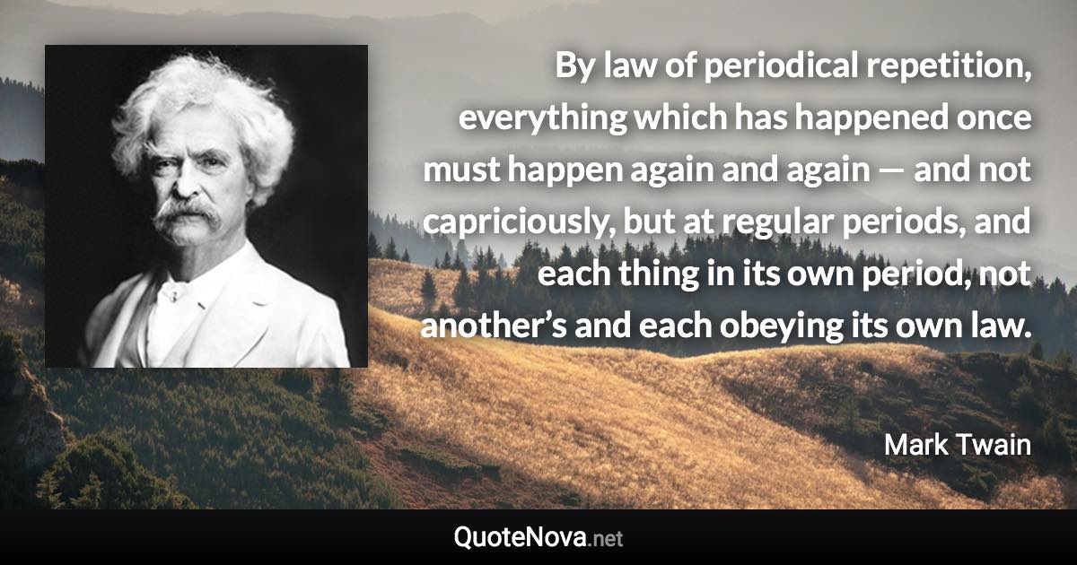 By law of periodical repetition, everything which has happened once must happen again and again — and not capriciously, but at regular periods, and each thing in its own period, not another’s and each obeying its own law.