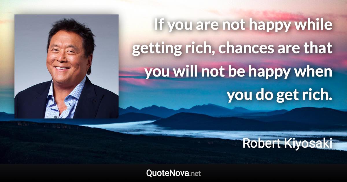 If you are not happy while getting rich, chances are that you will not be happy when you do get rich.