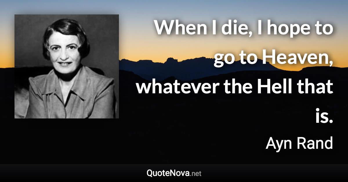 When I die, I hope to go to Heaven, whatever the Hell that is. - Ayn Rand quote