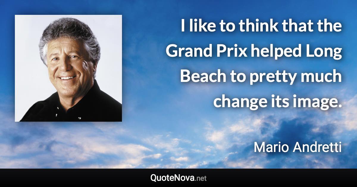 I like to think that the Grand Prix helped Long Beach to pretty much change its image. - Mario Andretti quote