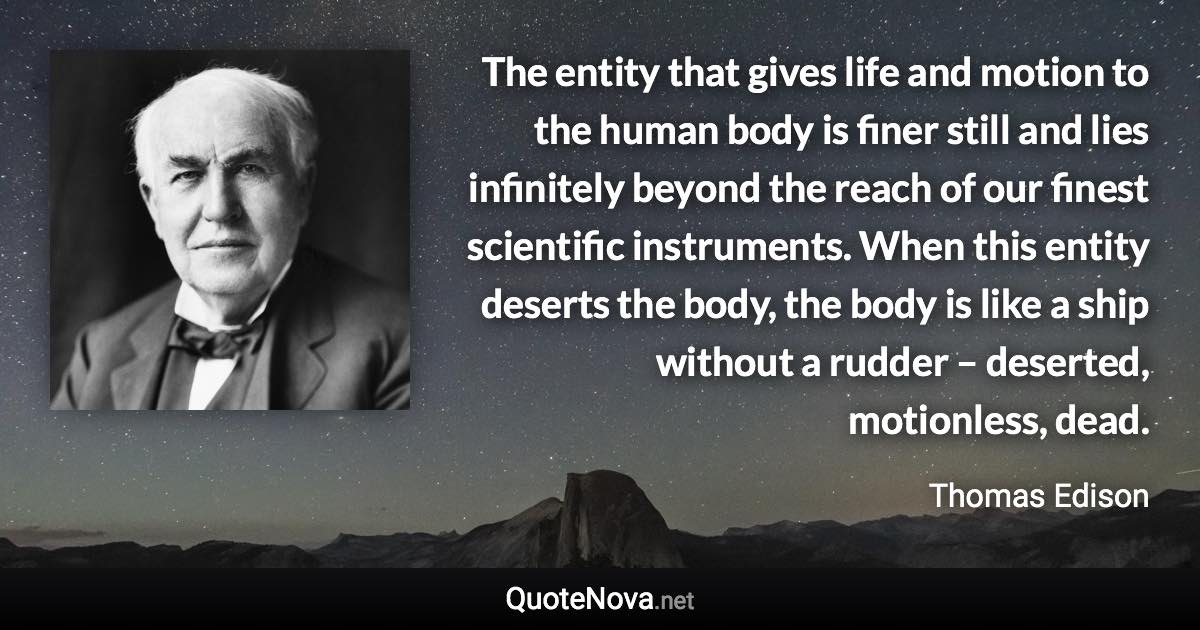 The entity that gives life and motion to the human body is finer still and lies infinitely beyond the reach of our finest scientific instruments. When this entity deserts the body, the body is like a ship without a rudder – deserted, motionless, dead.