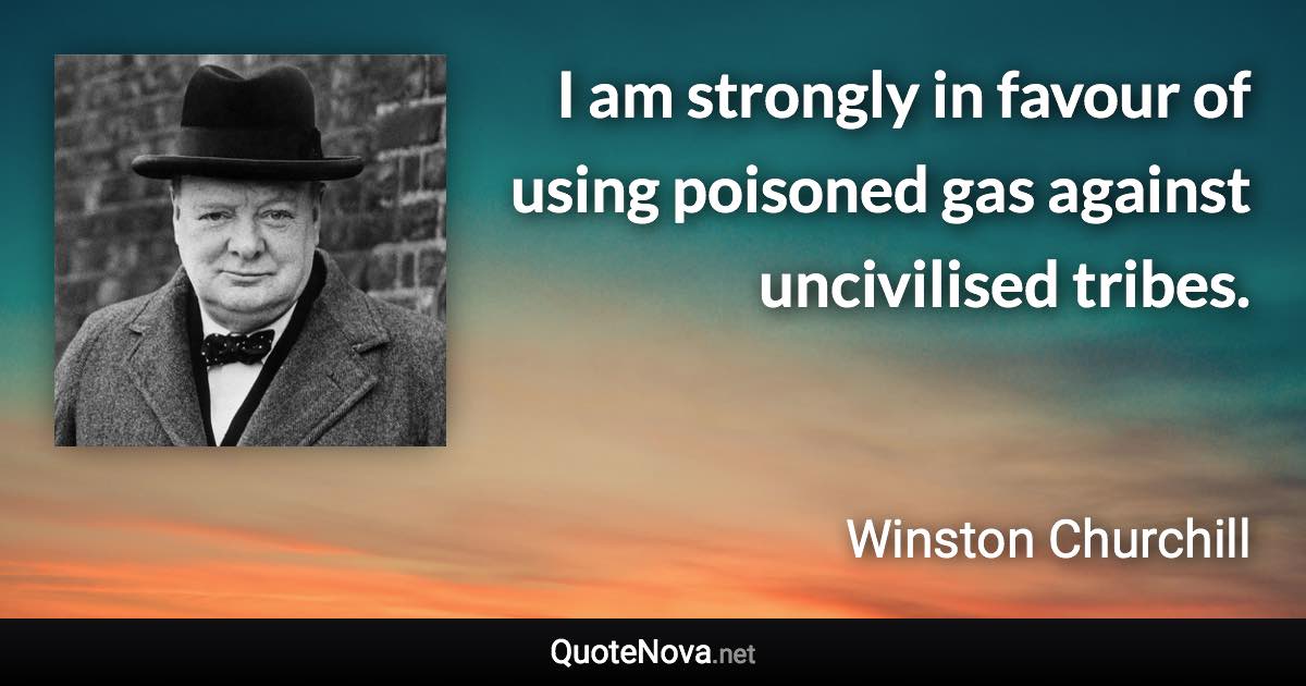 I am strongly in favour of using poisoned gas against uncivilised tribes. - Winston Churchill quote